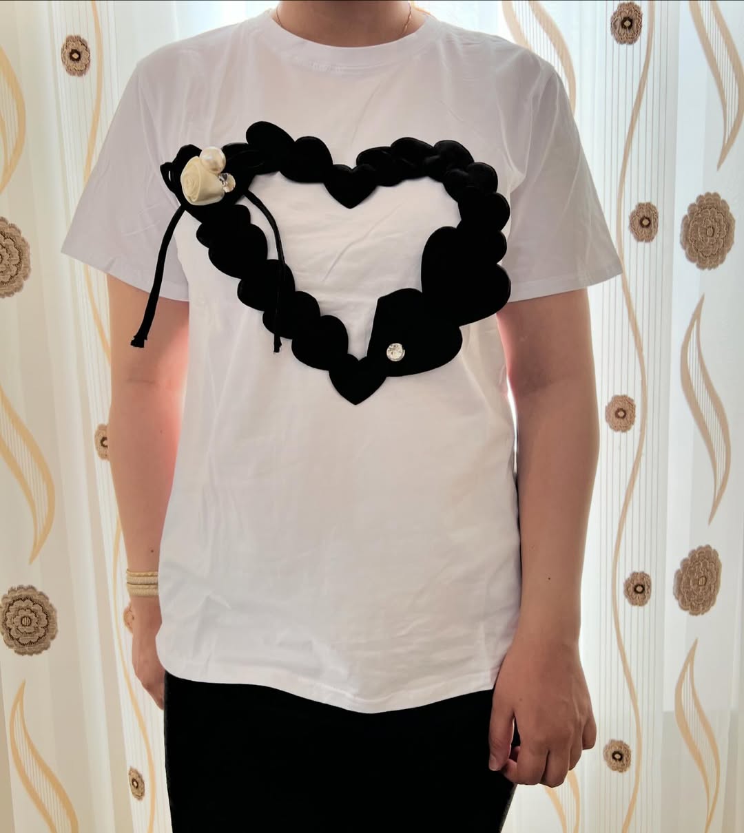 تیشرت سفید جلو قلب تک رنگ سفید جنس کار نخ پنبه فری سایز تا۴۶ . . . بااحترام۳۳۵ قلبی